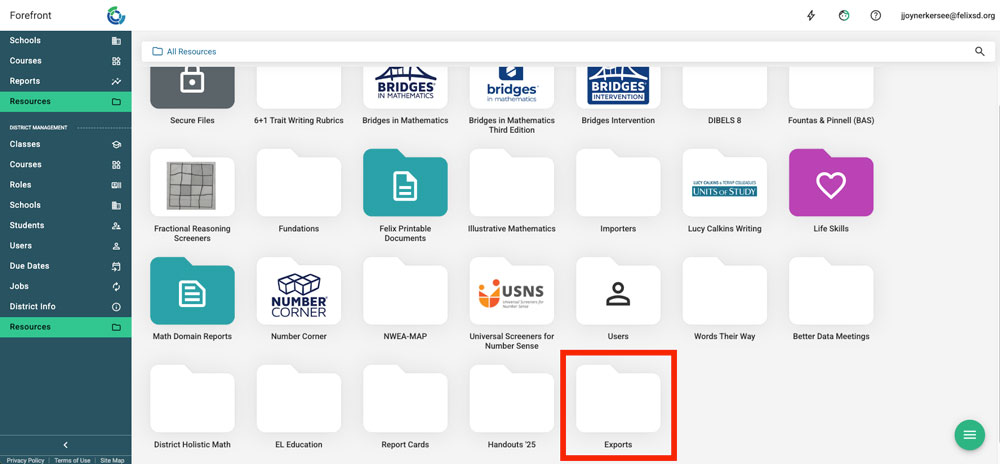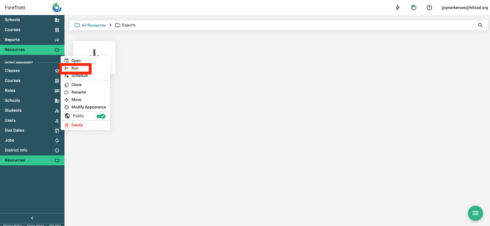 This article explains how to access and run jobs to export data from Forefront. If you need a nightly sync, connect with support@forefront.education to get a job scheduled.