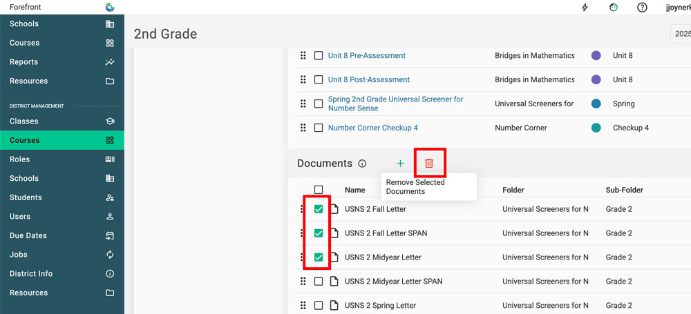 Check the checkbox of the document/letter/Handout to Remove. Click the red trash can to remove it.