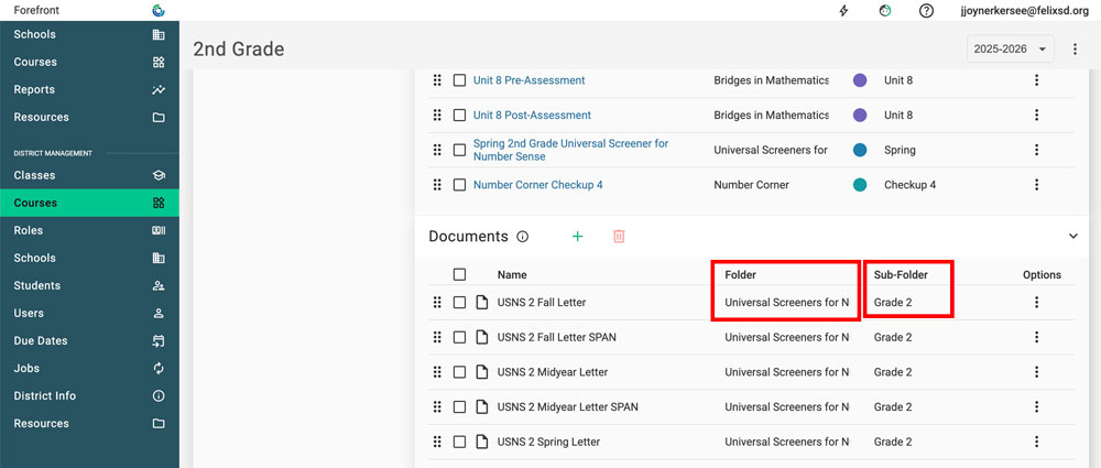 New for the 25-26 school year, documents/letters/Handouts can be organized into Folders and Subfolders.
