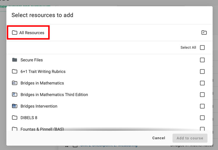 Step 4: Use the folder structure to access the document/letter/Handout. Click “All Resources” in the breadcrumb trail to navigate to all folders.