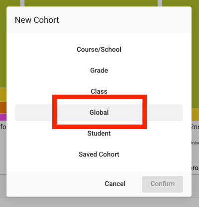 Forefront’s “Global Cohorts” aggregate student performance data to create national benchmarks for preconfigured assessments. These de-identified, aggregated data sets allow you to compare results for your students to a national data set. Note that when assessments are cloned and modified, it is no longer possible to compare those assessment results to the national data set.