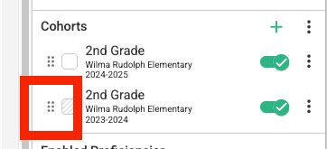 Tip: Use the six-dot array grab handle to order the cohorts in the correct time order.