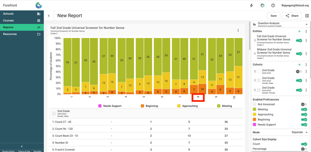 Again, click the questions on the bottom of the report to see which questions on the assessments align to the standard of emphasis.