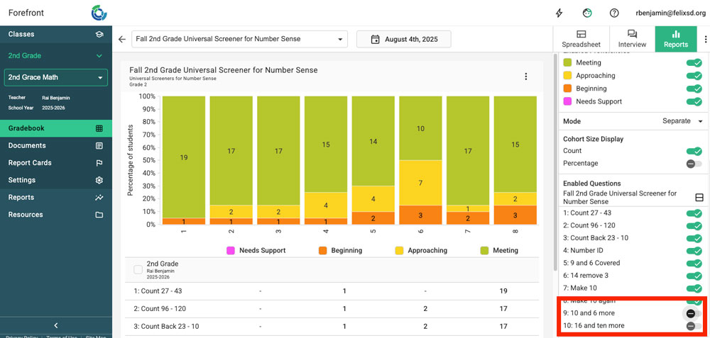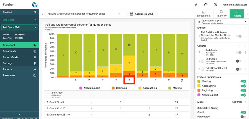 This report shows question-by-question performance for your class. (You can add other cohorts, or groups of students.)