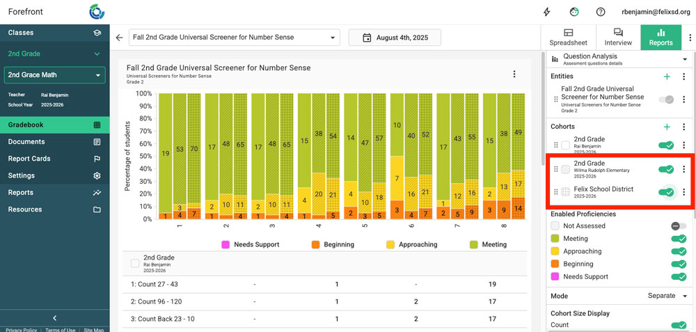 - (With an additional, larger cohort) How did my class do on this assessment in comparison to our school or district?