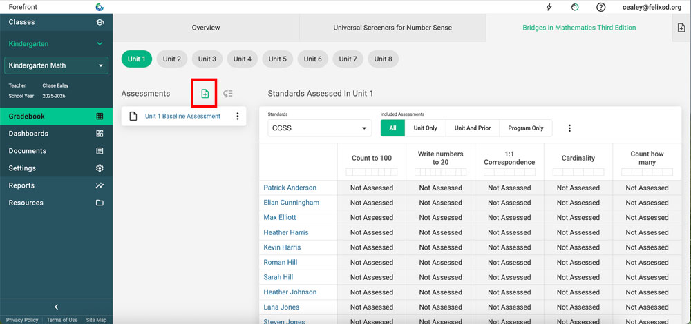 Before adding the assessment, the assessment will have to exist. It may be a district assessment, or already in the resources folder. Or, the assessment will need to be built or cloned.