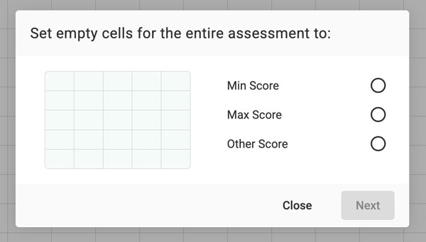 If you wish to just set the score to max, min or other value for a specific question or task, right-click on the item number and select “Set empty scores to…” Note: If the option is greyed out, make sure you are clicked into the correct date tab at the bottom.