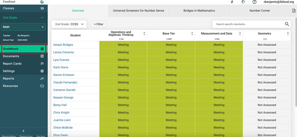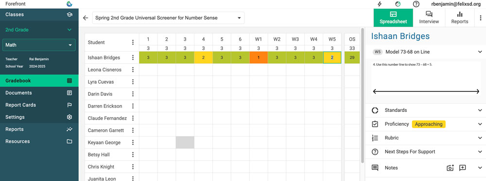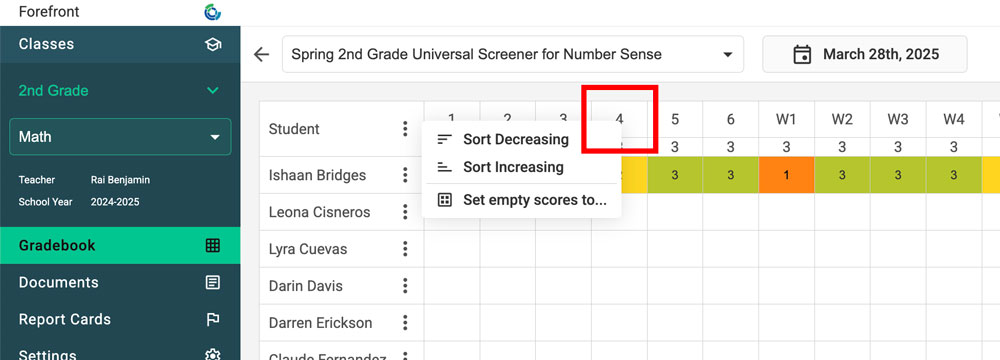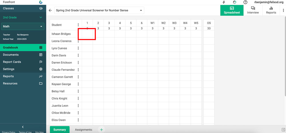 To access the Spreadsheet view, navigate to the Gradebook for a class.